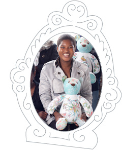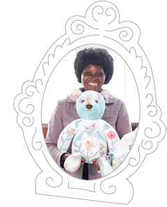 Congolese Gisele Kasumba, known affectionately by her friends as ‘Madam’, is not only a talented needlepoint artist, but also an aspiring fashion designer. Here, she shows off one of her first creations, named Masha, which means ‘love’. ‘Love’ is also the wish that she wants to send to the world with this teddy bear. “Everything I make must be perfect. I give my creations a lot of love!”